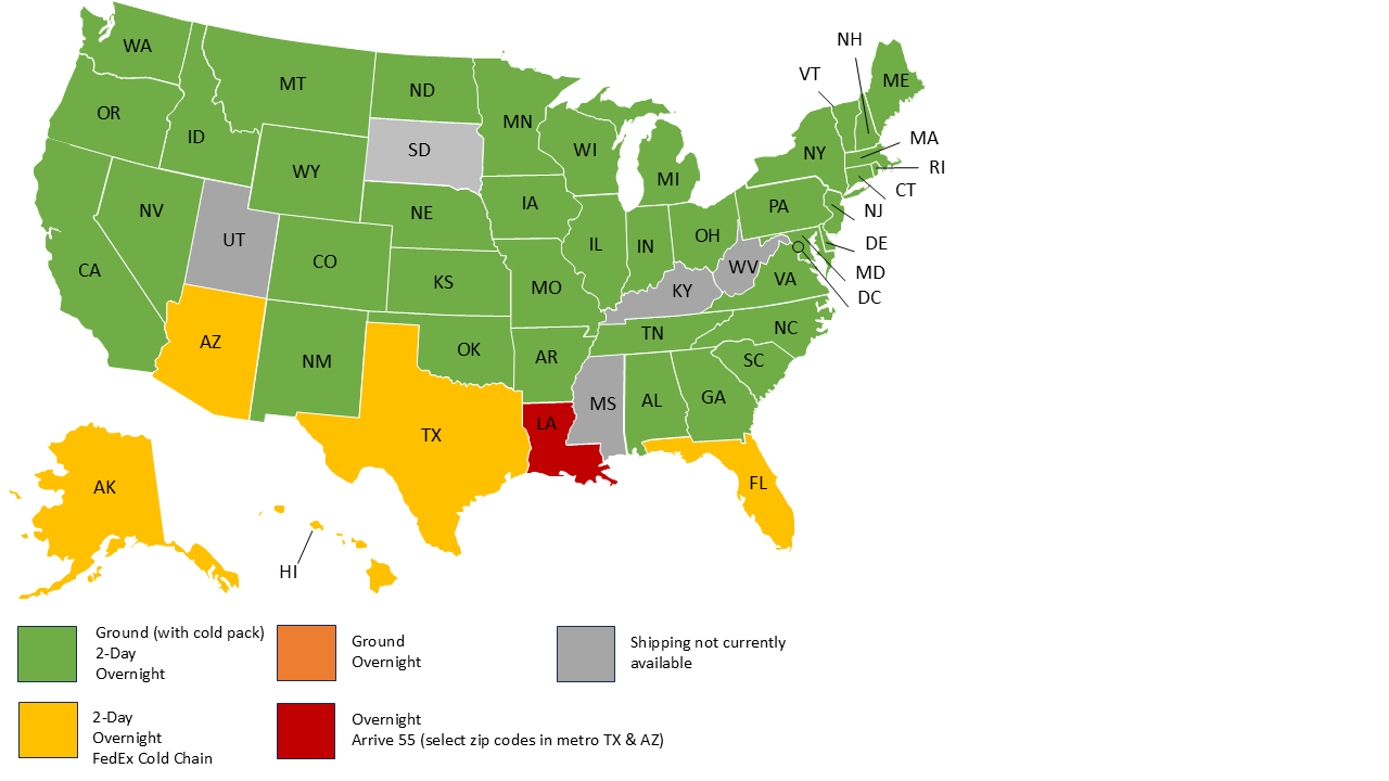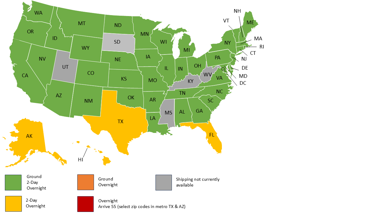 Although Ground shipping services are available throughout the year, shipping via expedited methods (i.e., 2-Day Air or Overnight) will better ensure the integrity of your wine.